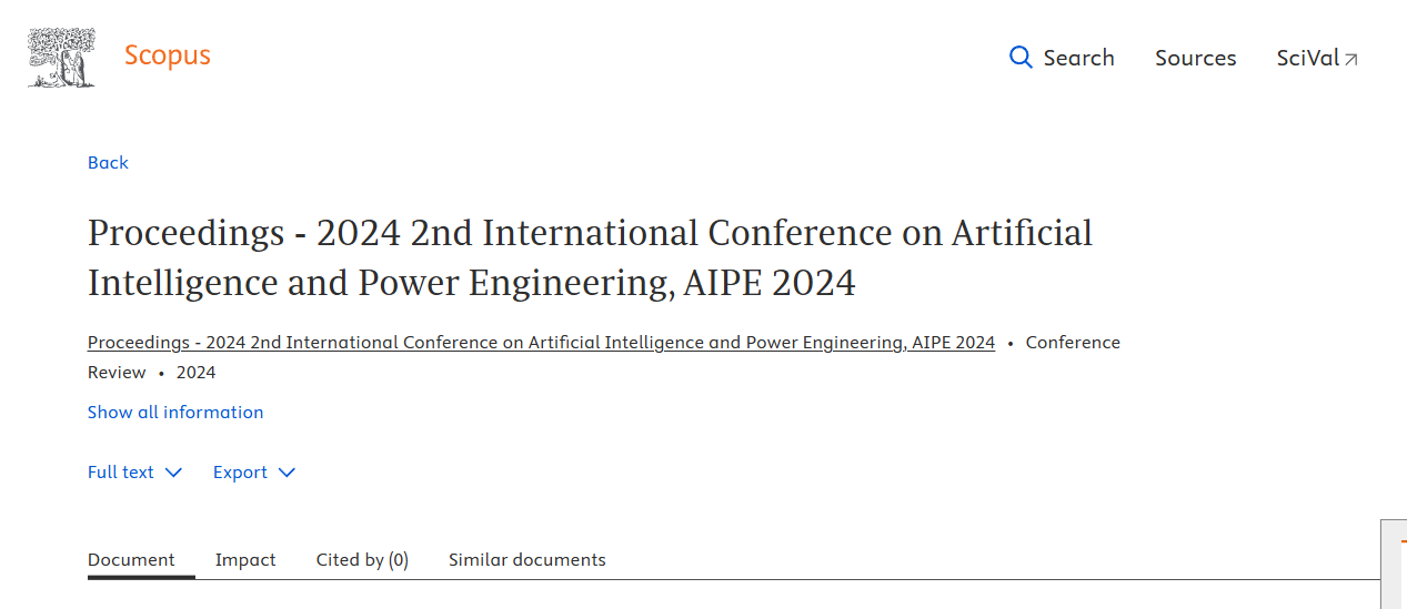 AIPE 2024 >> IEEE Xplore >> Ei Compendex & Scopus